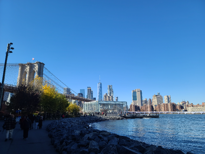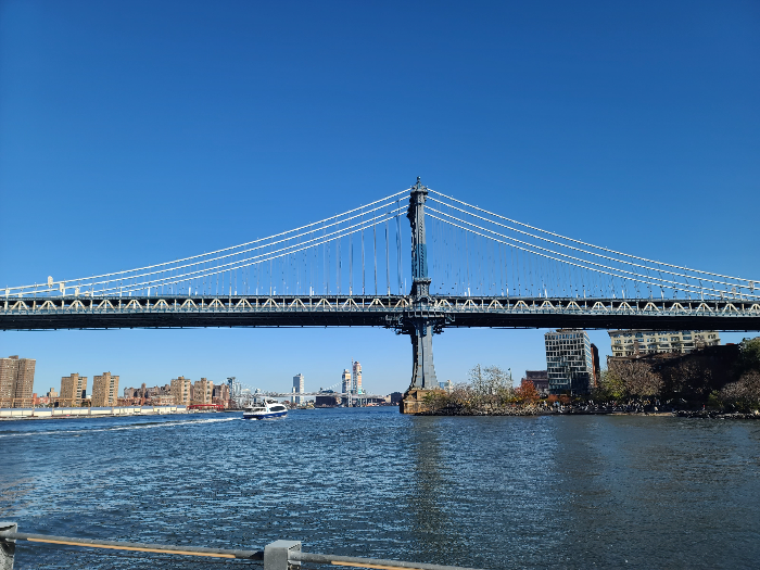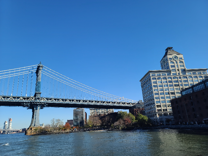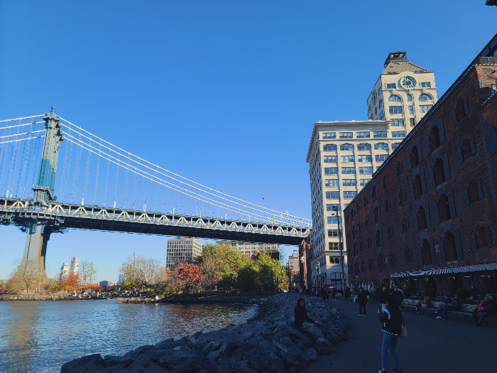 맨해튼 브리지와 브루클린 브리지 사이 이스트강을 따라 자리 잡고 있어 두 다리의 풍경을 동시에 감상할 수도 있습니다.