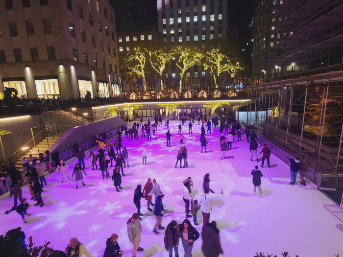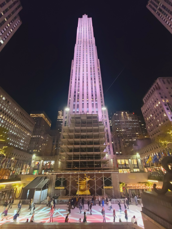 록펠러센터에 도착하니 영화와 텔레비전에서 봤던 스케이트장이 눈에 들어왔습니다. 록펠러센터 스케이트장은 생각보다 규모가 작았습니다. 스케이트장 안에는 스케이트를 즐기는 사람들로 가득 차 있었습니다. 스케이트장 위쪽으로 대형 크리스마스트리가 제작 중이었습니다.