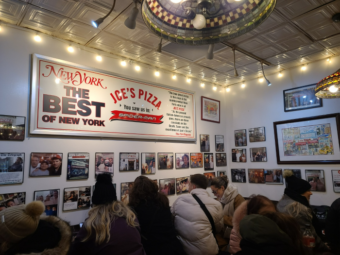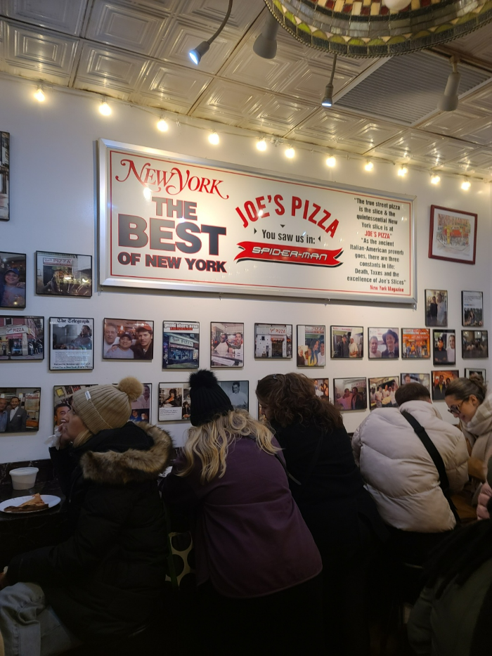 가게 안에는 피자를 먹는 사람들로 가득 차 있었습니다. 피자를 가게에서 먹지 않고 포장해 가는 사람들도 많았습니다. 저희는 Joe's 피자를 꼭 맛보고 가기로 하고 줄을 섰습니다. 줄은 생각보다 빨리 줄었습니다. 약 30분의 기다림 끝에 저희도 가게 안으로 들어가서 주문을 할 수 있었습니다.