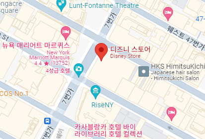 타임스퀘어 광장 끝부분에 디즈니 스토어가 있습니다. 이곳에도 디즈니캐릭터 인형과 장난감 그리고 기념품들이 많이 있었습니다. 친숙한 캐릭터들이 많아서 좋긴 했는데 이곳은 어린이들이 좋아할 만한 곳이었습니다. 청소년이 된 우리 아이들은 조금 시시해하는 듯했습니다. 그리고 캐릭터 인형 가격이 생각보다 비쌌습니다.