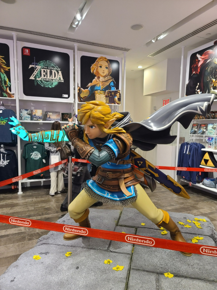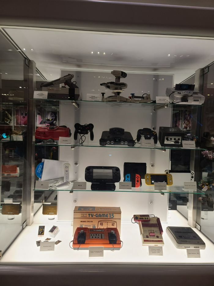 2층에는 레전드 게임 '젤다의' 주인공 '링크'가 있었습니다. 그리고 직접 체험해 볼 수 있는 게임존도 있었습니다. 또한 닌텐도의 역사를 한눈에 볼 수 있는 게임기들도 한 곳에 전시되어 있었습니다.