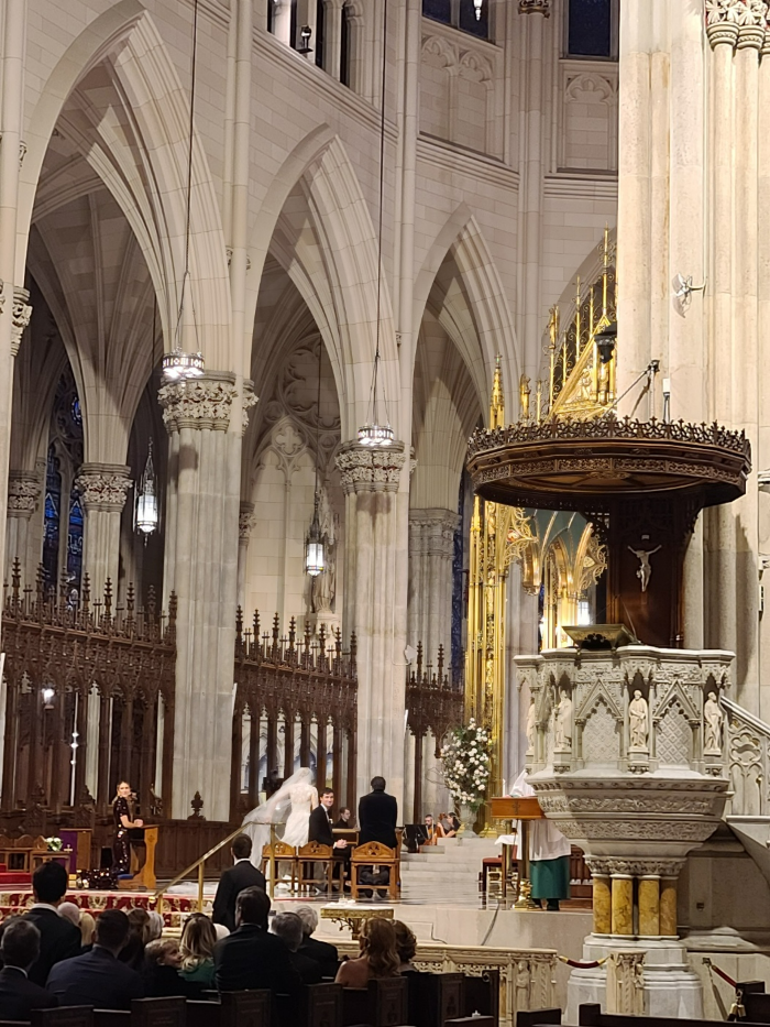 성당 내부로 들어가 보니 결혼식이 열리고 있었습니다. 영화에서 봤던 것처럼 신랑 신부의 친구들이 멋지게 차려입고 들러리를 서고 있었습니다. 미국 여행 중에 이런 결혼식을 볼 수 있어서 매우 운이 좋았습니다.