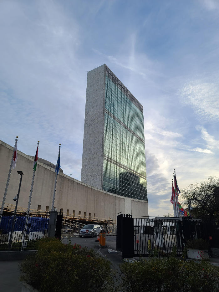 지하철 역에서 내려서 유엔 본부까지 약 10분 정도 걸어서 이동했습니다. 유엔 본부에 가까워질수록 주변에 경찰이 많이 있었습니다.