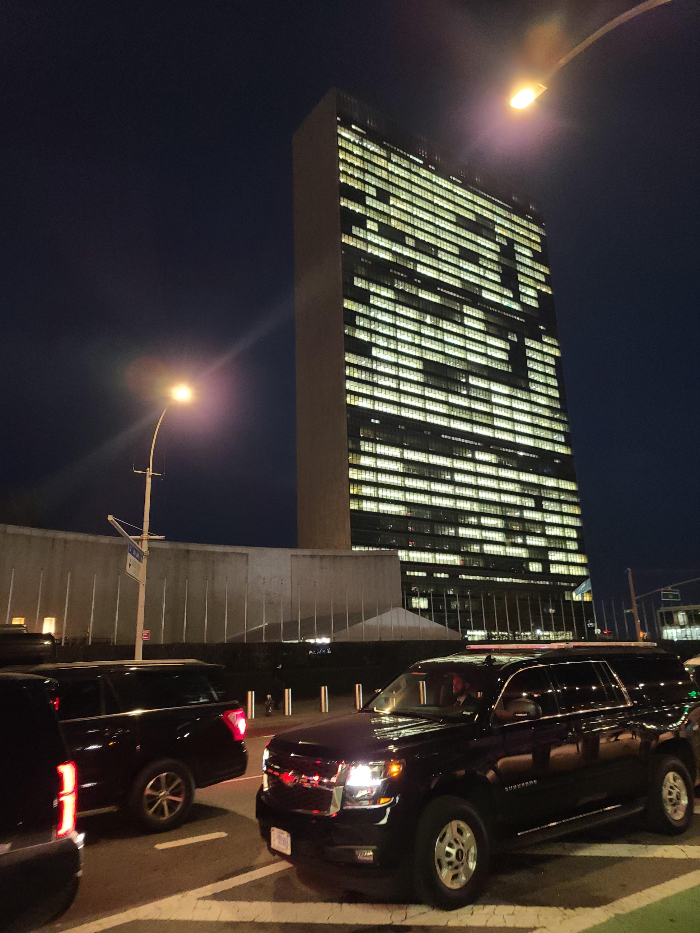 약 1시간 정도의 투어를 마치고 유엔 본부를 나올 때는 이미 해가 지고 어두워졌습니다. 일부 직원들은 퇴근을 서두르고 있었는데 유엔 본부에는 아직 환하게 불이 켜져 있는 사무실이 많이 있었습니다.