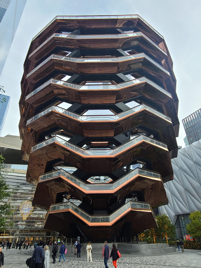 메가버스에서 내리자마자 바로 향한 곳이 베슬입니다. 베슬은 높이 16층 높이의 타원형 계단 구조물입니다. 2019년 3월에 개정했습니다. 이 건물은 맨해튼의 스카이라인과 허드슨 강을 한눈에 조망할 수 있는 전망대로도 유명합니다.