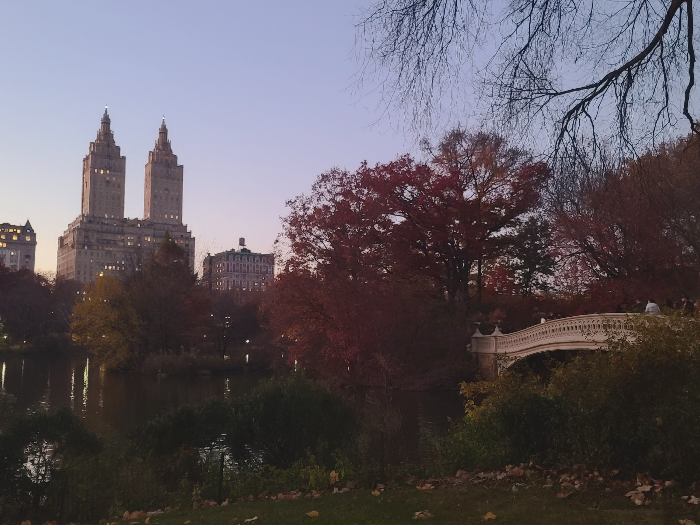 공원 안쪽까지 걸어 다니며 구경하고 사진을 찍다 보니 어느덧 시간이 지나 어두워졌습니다. 원래 계획은 센트럴파크에서 피크닉도 즐기고 싶었는데 센트럴파크 분위기만 느끼고 돌아왔습니다. 가을 저녁 센트럴파크는 여전히 운동하는 사람, 관광온 사람들도 북적였습니다. 그리고 센트럴파크 주변에는 고급아파트처럼 보이는 건물들이 많이 있었습니다. 그 아파트에서 센트럴파크를 내려다본 적은 없지만 상상만으로도 전망이 매우 좋을 것 같았습니다.