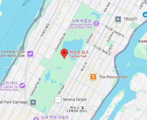 센트럴파크는 맨해튼 북쪽에 위치한 공원입니다. 센트럴파크로 가는 버스가 많이 있고, 버스 정류장도 센트럴파크와 가까워서 저희는 버스를 타고 갔습니다.